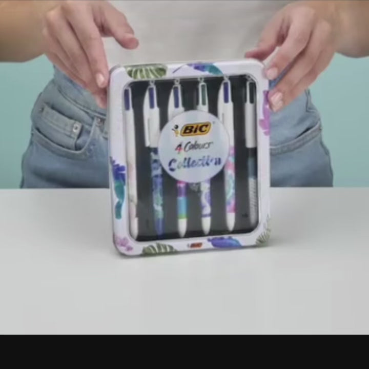 一款可重複使用的收藏盒,內含6支BIC四色按動原子筆,以趣味和現代風格重新詮釋經典的BIC四色筆。盒內包含「植物系列」和「漸層系列」原子筆,將色彩繽紛的大自然與時尚潮流結合在一起。不論是筆記、繪畫還是製作「子彈日記」,都能以藍、紅、綠和黑四種中型筆尖創造豐富的色彩。這些筆具備耐用性,且在法國製造,可重複填充墨水,平均書寫長度達8公里。簡而言之,這是經典BIC筆的新潮再現!