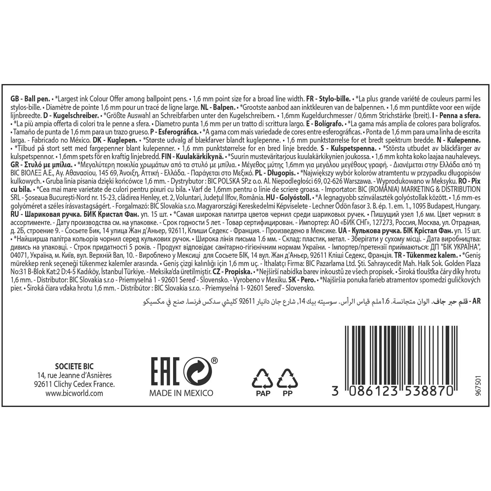 BIC 比克 1.6mm Cristal Multicolour 彩色15色 - 透明黑色筆桿